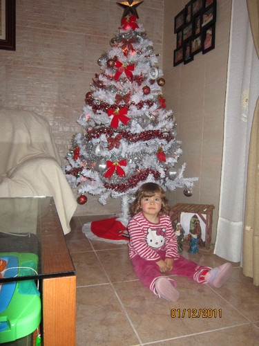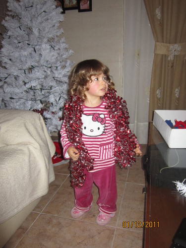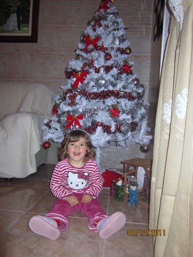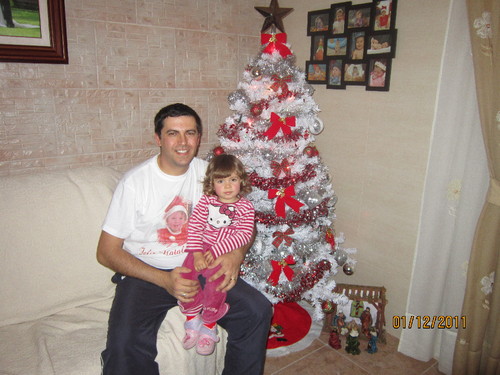 A Nono saltava de felicidade com a bagunça que havia na sala , brincou com as fitas e com as bolinhas e dava beijinhos no Pai Natal ;) Depois de estar toda composta já não lhe ligou agora vamos contabilizar os dias que a árvore se vai manter de pé ;)