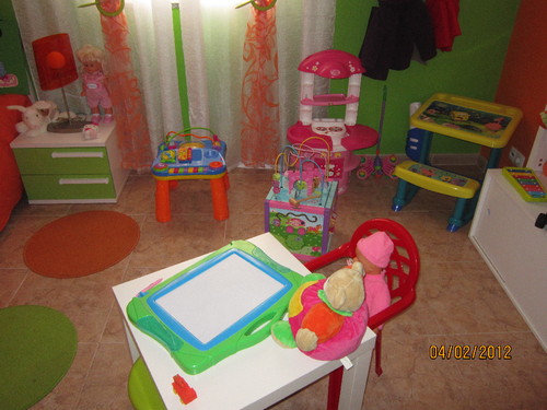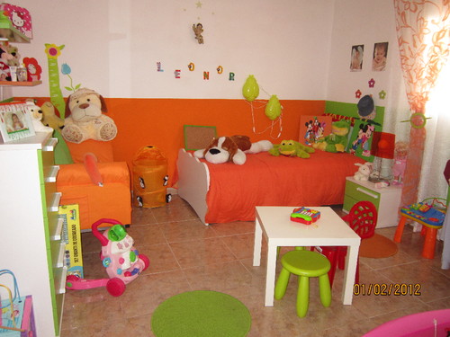 O quarto da Leonor apesar de ser razoavelmente grande tinha a cama ao meio e ocupava imenso espaço e sobrava pouco para os lados para ela brincar..