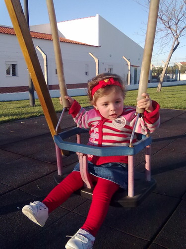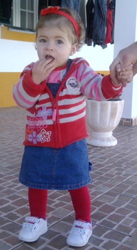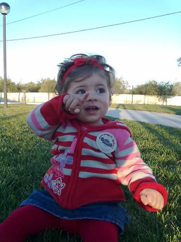 Depois como ainda não anda bem sozinha temos que andar com ela pela mão e já andamos todos aflitos das costas. É terrível , brinca com os amigos como se fosse crescida ate atrás da bola vai a correr.