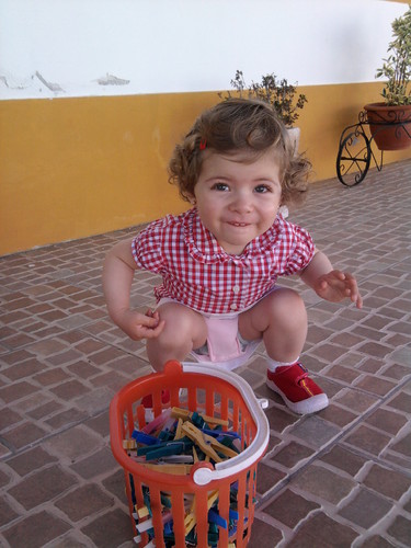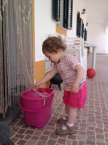 Mas tirando a parte de brincar com os comandos, pc, partir coisas na casa da Avó etc gosto muito de ir para o quintal jogar à bola, brincar com o cesto das molas da roupa e ajudar a mamã nas limpezas hehehehe