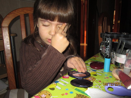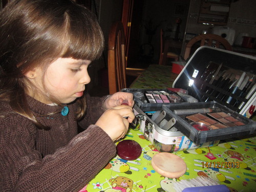 E aqui com o seu novo estojo de maquilhagem ;) pode ser que assim a minha caixinha tenha descanso e dure mais uns tempos longe da mãozinhas da piolha!!!