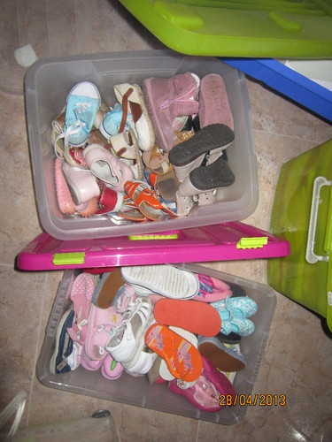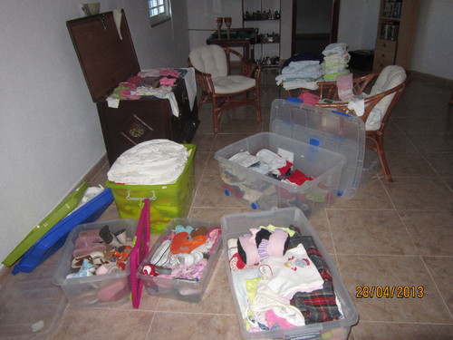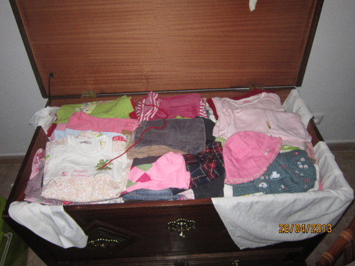 Hoje foi dia de ir ao sótão dar volta as caixas e caixinhas da roupa e sapatos da filhota ver se havia algo que pudesse usar no Lourenço.